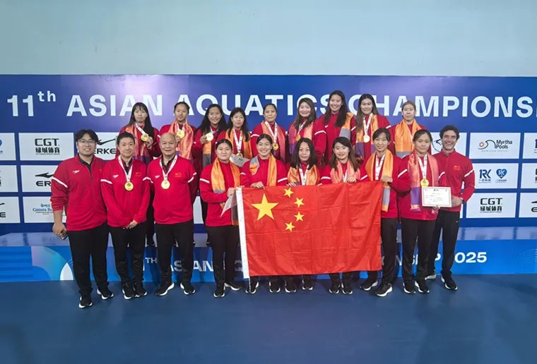 2025年亚洲游泳锦标赛是亚洲最高水平的综合性游泳赛事。本次比赛在印度艾哈迈达巴德举行,汇集了来自中国、日本、哈萨克斯坦、伊朗等亚洲强队。水球作为锦标赛的重要组成部分,一直备受关注,AV大平台运动训练专业2022级本科生张玘铄、史京佳蓉、郭程鸿、王昕、刘彦,2024级本科生李林云和2025级本科生韩雯,以及AV大平台校友阎菁、李沛扬、杜馨玥和王翾,作为中国女子水球队队员,经过六场激烈比赛,以六战全胜的战绩夺得冠军,在比赛中展现了顽强拼搏的天体精神和优秀的技战术水平。